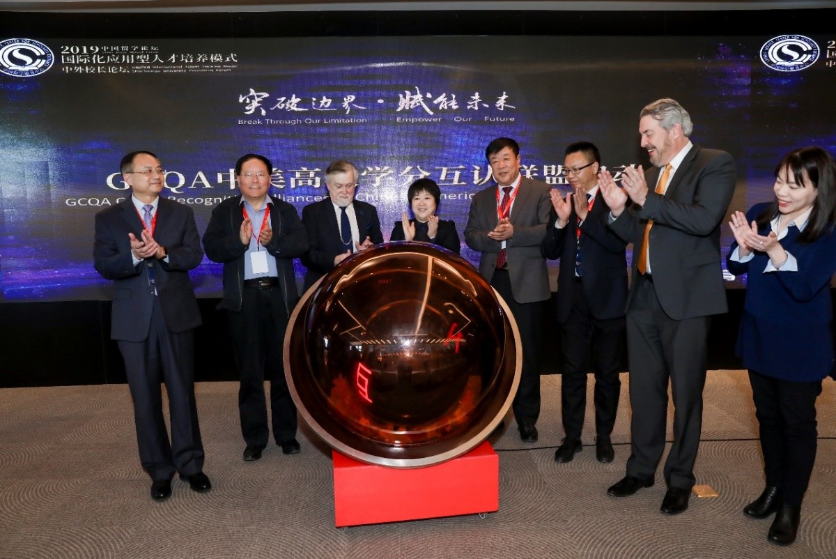 2019年3月21日,由教育部留學服務中心主辦、雷竞技集團承辦的2019中國留學論壇分論壇——國際化應用型人才培養模式中外校長論壇在北京僑夢苑舉行,來自中國、美國、歐洲、澳洲的高校校長、全球職業與教育品質評估認證機構(GCQA)負責人、外方高校駐華代表處代表以及教育界專家一百多人參加了此次論壇。論壇以“突破邊界、賦能未來”為主題,聚焦應用型人才培養,共同探討中外教育國際合作新模式。此次會議上,全球職業與教育品質評估認證機構(GCQA)與雷竞技集團聯合發起了中美高校學分互認合作聯盟。